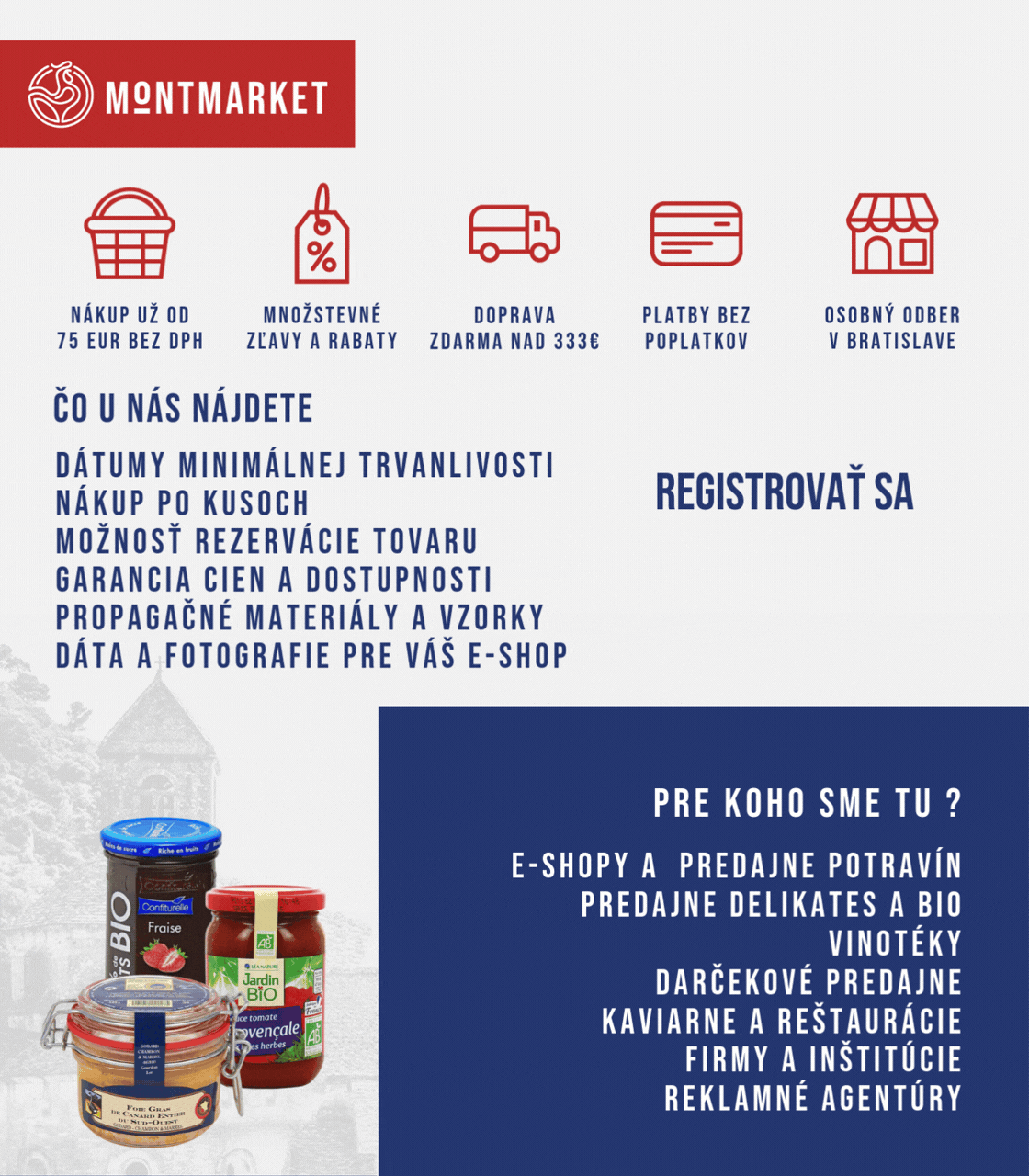 MONTMARKET je veľkoobchodný e-shop importéra francúzskych potravín a delikates AMP IMPORT, s.r.o..
